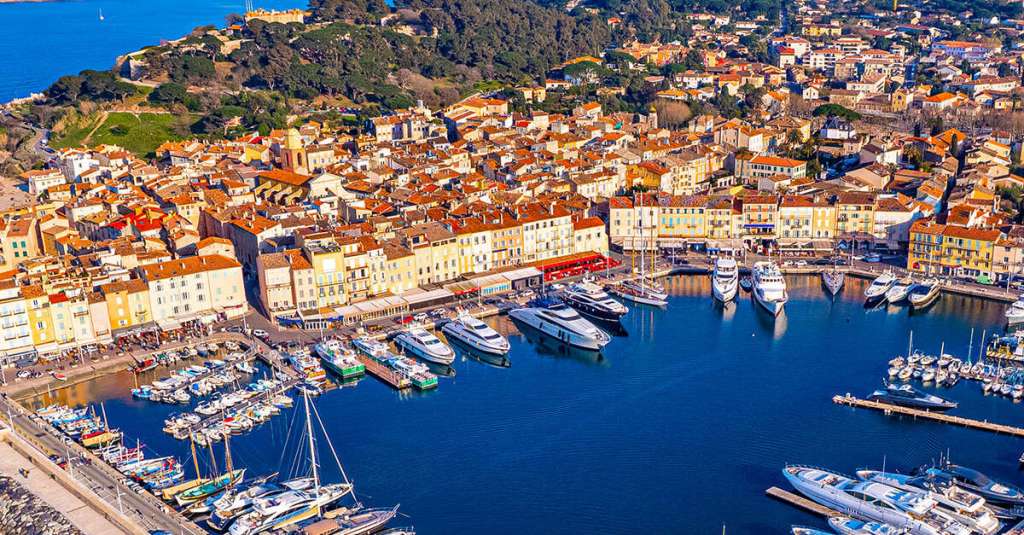Saint-Tropez (/ˌsæn troʊˈpeɪ, – trəˈ-/ SAN troh-PAY, - trə-,[4][5] French: [sɛ̃ tʁɔpe]; Provençal: Sant Tropetz [san(t) tʀuˈpes]) is a commune in the Var department and the region of Provence-Alpes-Côte d’Azur, Southern France. It is 68 kilometres (42 miles) west of Nice and 100 kilometres (62 miles) east of Marseille, on the French Riviera, of which it is one of the best-known towns. In 2018, Saint-Tropez had a population of 4,103. The adjacent narrow body of water is the Gulf of Saint-Tropez (French: Golfe de Saint-Tropez), stretching to Sainte-Maxime to the north under the Massif des Maures.